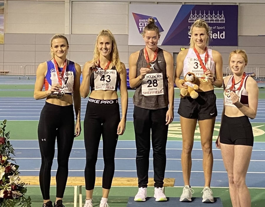 Vor dem abschließenden 800-Meter-Rennen warf sie dann schließlich einen genaueren Blick auf die Gesamtwertung. Nachdem sich ihr Trainer Sam Stanislaus die persönlichen Bestzeiten der Konkurrentinnen angeschaut hatte, war klar: Mit einem guten 800-Meter-Lauf ist eine Medaille möglich. Also ging Voß das Rennen über die vier Hallenrunden mutig an, lief von Beginn an vorne weg und sicherte sich in 2:16,55 Minuten die Silbermedaille. Von der Gesamtsiegerin des Fünfkampfs Kaitlin Smith trennten sie am Ende nur 20 Zähler. Voß machte damit ihren Medaillensatz bei nationalen Meisterschaften in Großbritannien komplett. Nach Gold und Bronze bim Siebenkampf, war der Vize-Titel am Wochenende bereits ihre dritte Medaille in Großbritannien. „Ausflüge nach England sind immer ein schönes Erlebnis“, resümierte sie mit Blick auf die erfolgreiche Bilanz. Viel Zeit zum Ausruhen hat Voß jedoch nicht. In anderthalb Wochen startet sie bei der Deutschen Mehrkampfmeisterschaft in Leverkusen. mo