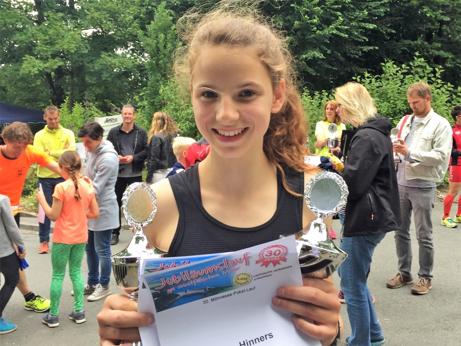 Mit vollen Händen ist Fioana Hinners am Samstagnachmittag von der 30. Auflage des Möhnesee-Pokal-Laufs nach Hause gefahren. Die LAZ-Sportlerin gewann bei der Veranstaltung der LG Deiringsen nicht nur den Ein-Kilometer-Lauf der Altersklasse W13, sondern belegte eine Viertelstunde später auch über die doppelte Distanz den ersten Platz.