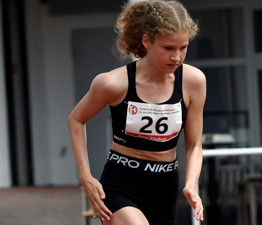 Im Wullenstadion begann der Wettkampf für die LAZ-Athletin mit einem selbstverschuldeten Fehlstart über 80-Meter-Hürden. Weil sie deutlich sichtbar vor dem Startschuss gezuckt hatte, handelte sich Blesken eine Verwarnung ein. Doch beim zweiten Versuch lief zum Glück alles glatt und nach einem tollen Lauf überquerte sie in der neuen persönlichen Bestzeit von 14,04 Sekunden die Ziellinie. Es folgte der Ballwurf mit einer Weite von 41 Metern, ein insgesamt solides Ergebnis. Vom anschließenden 100-Meter-Sprint konnte man das nicht sagen, erfüllten die 14,75 Sekunden doch bei weitem nicht die Erwartungen, weder von der Sportlerin noch von Trainer Ralf Reinhard.