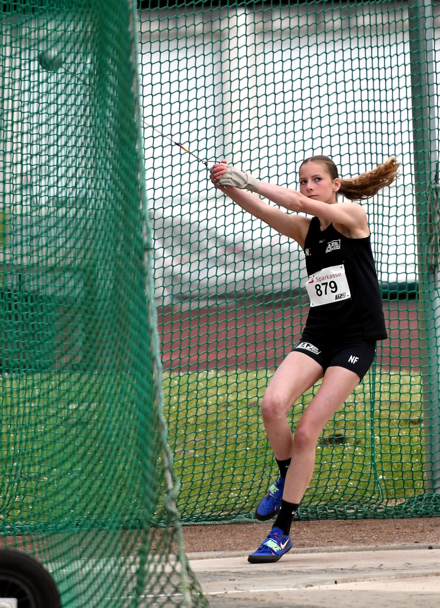 Gleichzeitig war die Veranstaltung auch als Abschiedsgeschenk für Amelie Menzebach aus der LAZ-Wurfgruppe gedacht. Die U18-Athletin geht bald für ein Jahr nach Kanada. Mit 33,10 Metern kam sie bis auf 57 Zentimeter an ihre zwei Monate zuvor an gleicher Stelle erzielte Bestleistung von 33,67 Metern heran. Einen tollen Wettkampf lieferte Nia Ferige ab, die knapp zwei Wochen nach ihrem sechsten Platz bei den Deutschen U16-Meisterschaften mit einem neuen Hausrekord glänzte. Auf ihrer Heimanlage präsentierte sich die junge Enserin mit insgesamt fünf gültigen Versuchen deutlich stabiler als bei den nationalen Titelkämpfen in Ulm und steigerte sich auf 44,79 Meter. Mit dieser Weite ist Ferige auch wieder die Nummer eins der W15 in Nordrhein-Westfalen und verdrängte die Leverkusenerin Leni Rau (44,26 Meter) von der Spitzenposition.