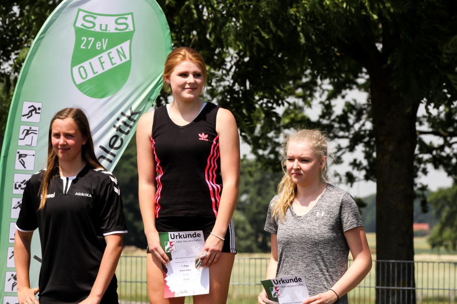 Zufrieden kehrte Annika Straub von den NRW Hammerwurf Meisterschaften aus Olfen zurück. Im Gepäck hatte sie zwei Vize Meisterschaften. Zum einen die NRW Vize Meisterschaft als auch die Westfälische Vize Meisterschaft, die in einem Wettkampf ausgetragen wurden. Mit neuer persönlicher Bestleistung von 39,43m konnte Annika sich den zweiten Platz hinter Sherin Köller aus Olfen, die das vier Kilogramm schwere Wurfgerät auf ihre neue Bestweite von 42,62m schleuderte, sichern. Drei ihrer sechs Würfe konnte Straub über ihre alte Bestmarke von 38m werfen.